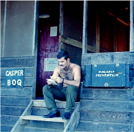 Casper Pilot WO1 Phillip Carter at "Ghost Town" BOQ at LZ English 1971